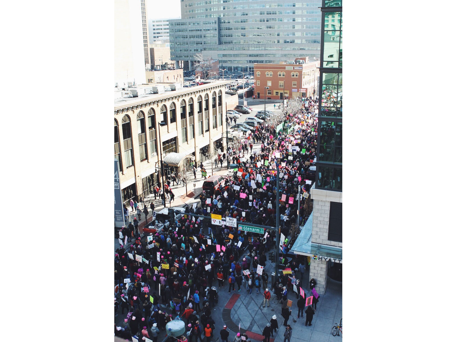 On Saturday, more than 100,000 people flooded downtown for the Women’s March on Denver, one of hundreds of peaceful demonstrations that happened around the world this weekend in response to the inauguration of President Donald J. Trump. Nationwide, the marches saw robust attendance (current estimates show that there were more than 3 million participants in the U.S. alone). The Women’s March on Washington—the March that started the movement—had to reroute due to its sizable crowd of an estimated 500,000-plus, and the Mile High City’s own gathering handily exceeded organizers’ expected turnout of 40,000 marchers. With more than 673 reported marches worldwide, the collective day of protest is being touted as the largest day of protest in U.S. history, with one in 100 citizens taking part.