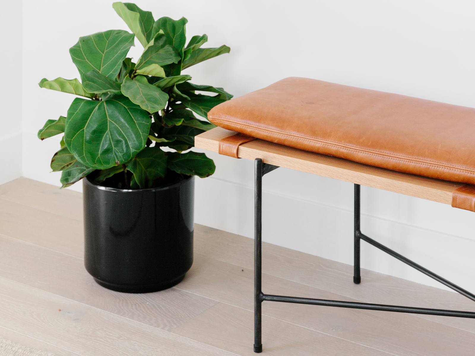 Enter their new line of furniture and home accessories, Denver Modern, which the pair launched in 2018 and currently sells online; eventually, they’ll display and sell their wares in a Clayton neighborhood showroom as well. The collection feels just right for Colorado: “We use mixtures of blackened steel, concrete, white oak, leather, and more,” Lindsey says. Adds Donnie: “What Lindsey and I are drawn to is modern, but we don’t like ‘cold’ furniture you can’t feel comfortable in and don’t want to see in your own house.” This sensibility, plus a commitment to craftsmanship that’s difficult to find in mass-produced furnishings, makes the Criswells’ line an ideal source for your next perfect piece.