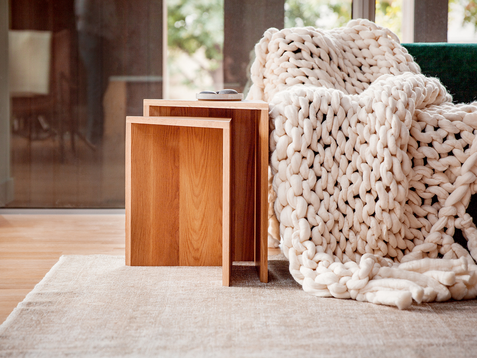 Objeti fabricates its wares in-house and partners with artisans around the globe—think Amish woodworkers in Ohio, alabaster sculptors in Volterra, Italy, and even a Turkish fez-hat-maker who crafts Objeti’s Soft Tools pendant lamps, which feature white wool interiors and fez-burgundy shades.