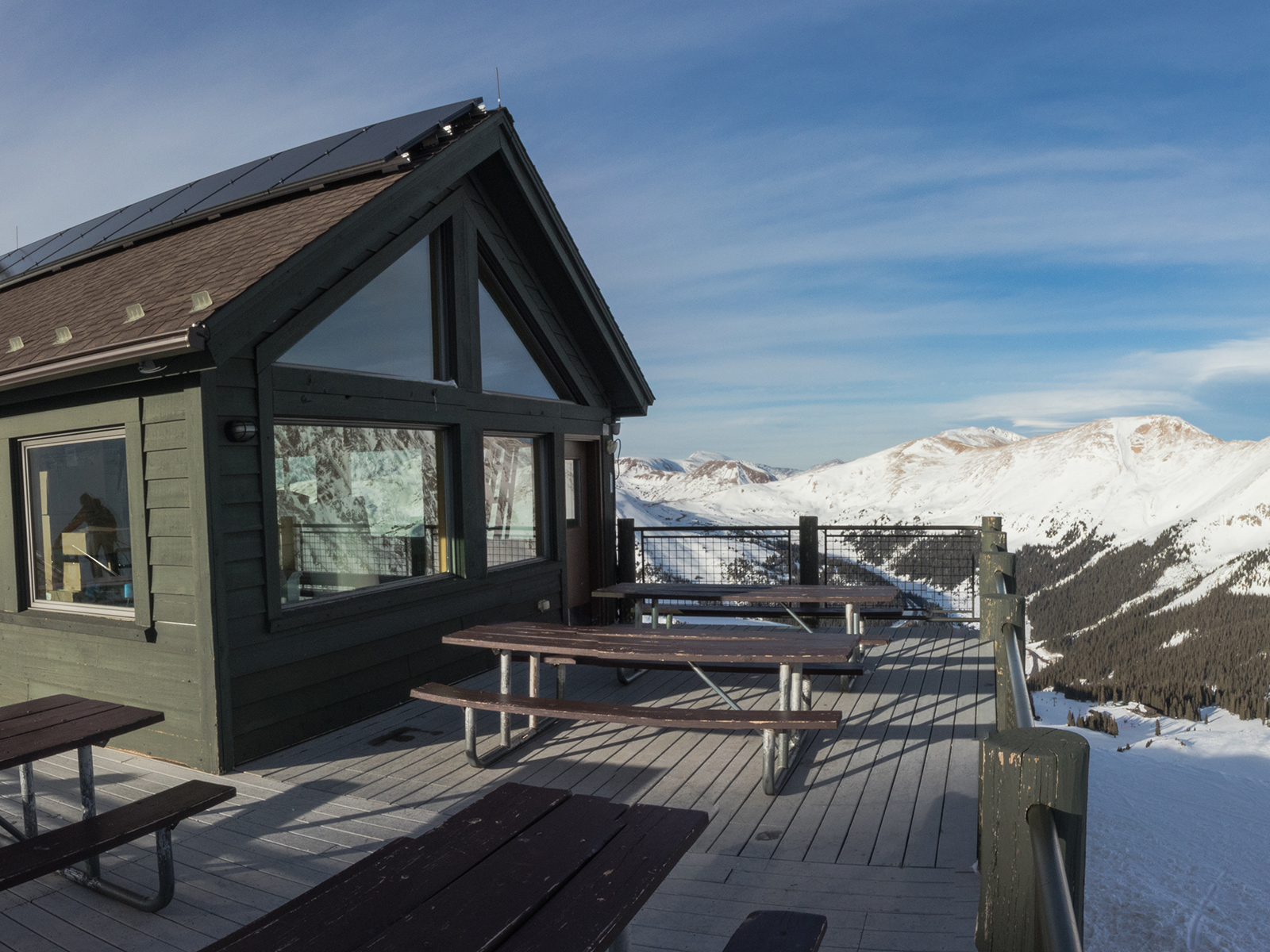 The glassed-in space, cheese and charcuterie platters, small selection of antipasti, panini, and salads, and espresso drinks further the high-alpine vibe. Cured meats such as coppa and prosciutto are sliced to order with a Legend slicer imported from Italy—a fitting tribute since A-Basin’s nickname is “the Legend.” A liquor license (beer, wine, and cordials) is pending.