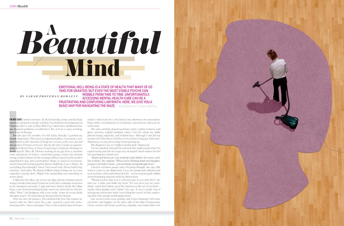 For the past few months, I’ve felt funky. Initially, I justified my cloudy disposition: This is just an adjustment phase, I reasoned, a normal reaction to the transition of being new in town, with a new job and new partner. It’ll pass on its own. But by the time I made an appointment with Kelley Gray at Grace Counseling in Littleton, I’d begun to doubt myself: After all, I’d been working in my pj’s from a one-bedroom apartment all winter—sometimes going a whole day without seeing another human. In the evenings, I’d beat myself up for another unproductive day, and catastrophize things as small as oversteaming the broccoli we’d planned for dinner. Suddenly, I was a failure. At everything. Even though I “knew” that wasn’t true, I’d lost hold of my emotions. And while The Sound of Music always brings me to tears, vegetables usually don’t. Maybe this melancholy was something to worry about.