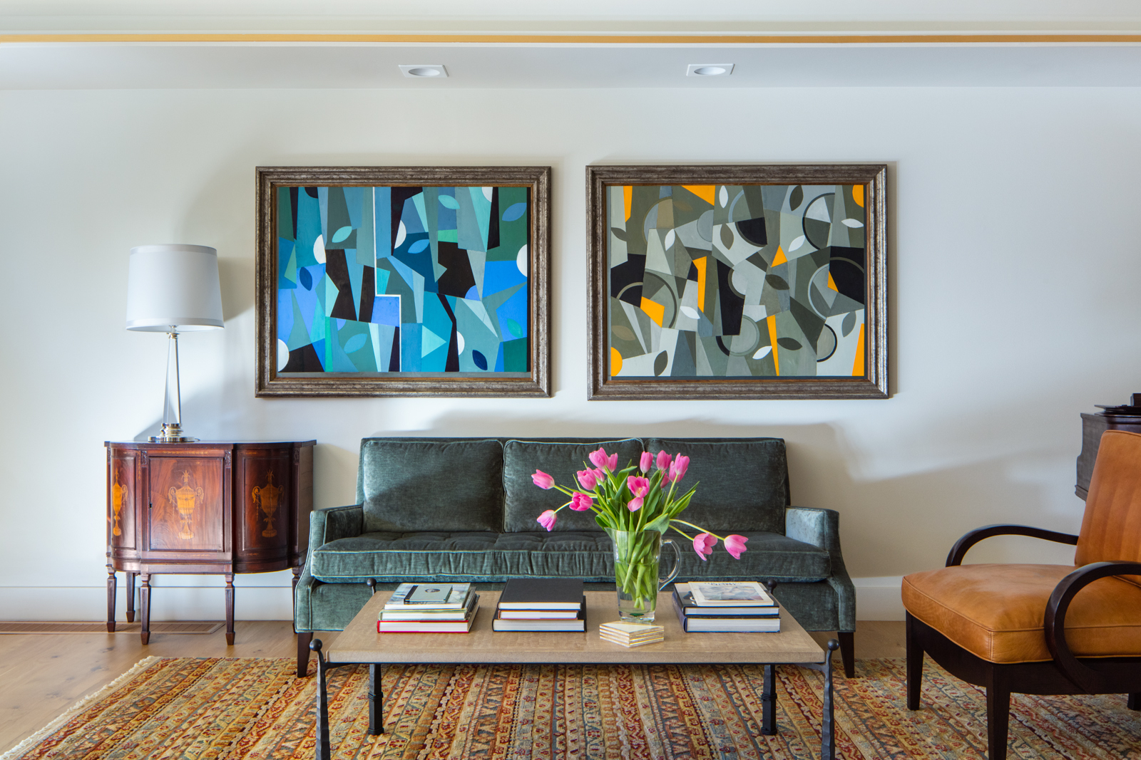 More artwork—most of it handpicked by the owner, an avid collector—gives the rooms extra personality. Some pieces, like those on the dining room’s gallery wall, were inherited, while others—like the graphic paintings above the living room sofa—are souvenirs from trips to fine-art meccas including New York City and London. “He has such good taste and is open to new concepts and ideas,” Hudacky says of her client’s collection—and his home’s fresh design. “The end result feels livable and not so ‘designed’ that it can’t be used.” Sinatra would approve.
