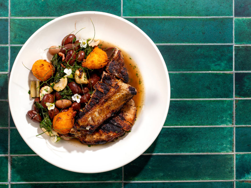 Overcome with curiosity, I ordered the dish, and when it arrived, the beans were Jack-and-the-beanstalk huge, purplish, and nearly spherical, plumped from hours of cooking. The interiors were almost meaty and the flavor was bold and earthy. These were no ordinary baked beans.