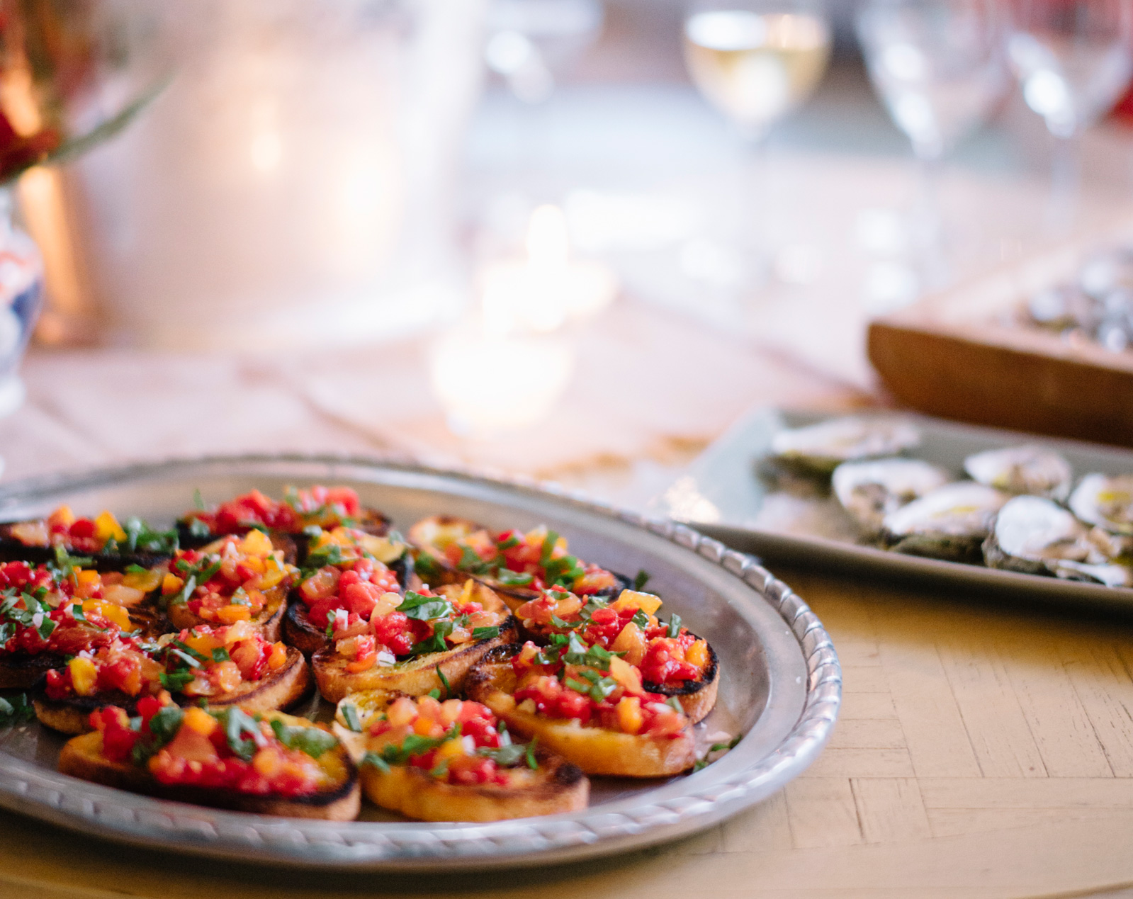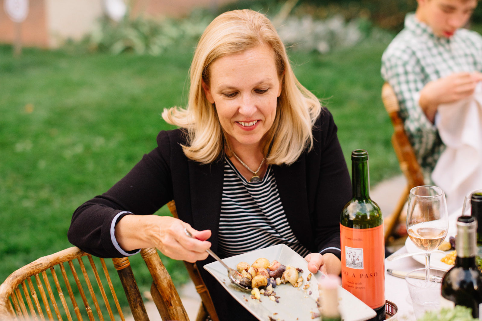 “Pete’s philosophy is ‘keep it simple, make it great,’ ” Macfarlane says. In keeping with that motto, Marczyk fires up the Weber grill and focuses on dishes that deliver maximum flavor with minimal effort. Macfarlane dresses the outdoor table with linens that don’t require dry-cleaning (sometimes even a bolt of fabric that she’s had a tailor finish with a hem) and serves dinner family style. “There’s something so great, so personal, about passing a plate to someone sitting next to you,” Macfarlane says. “It’s a simple but significant act of friendship and care, to smile and offer food to the person beside you. It’s a small gesture that builds community.” And since gathering together is what it’s all about, the added bonus of family-style dining is that Marczyk and Macfarlane aren’t stuck in the kitchen plating each dish. Instead, they’re right where they should be: at the center of it all.