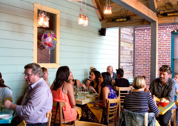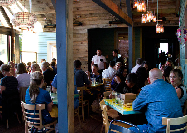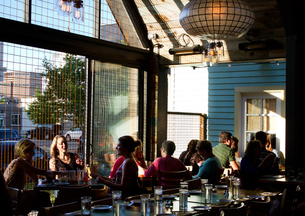 DiCaprio and Socarras Bigelow were determined to make the updated patio feel like an extension of the restaurant itself. That meant continuing a mix of textures (including lining the interior with barn wood), dropping lighting and fans to a cozy low level, and utilizing a corrugated steel roof to connect the patio to the restaurant, providing shade and cover for Colorado’s finicky weather patterns.