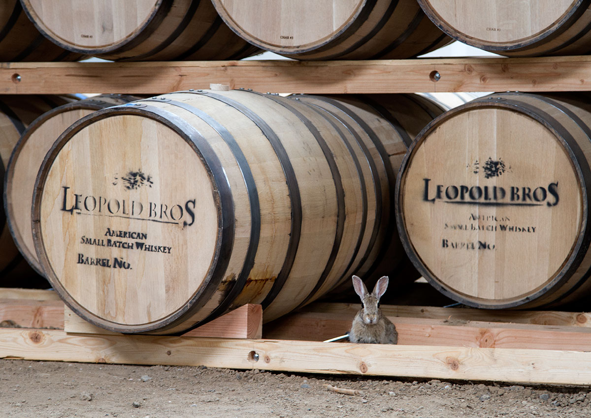 In the barrel storage area, whiskey ages for about two years. Leopold Bros. American Small Batch Whiskey and Maryland-Style Rye Whiskey (pictured) are aged in new, 53-gallon white oak American barrels that are charred on the inside. Keep a look out for Todd’s special whiskey barrel that he’s aging for his daughter’s 21st birthday—she was born in 2014—and the family of bunnies that call the storage area home.
