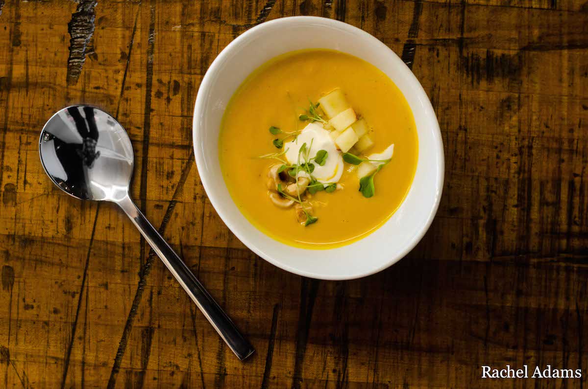 The squash soup is one of two options that will appear on the lunch (starting November 24) and dinner menus—it will also be available in the market section of the restaurant. Soups will rotate depending on ingredient availability and seasonality.