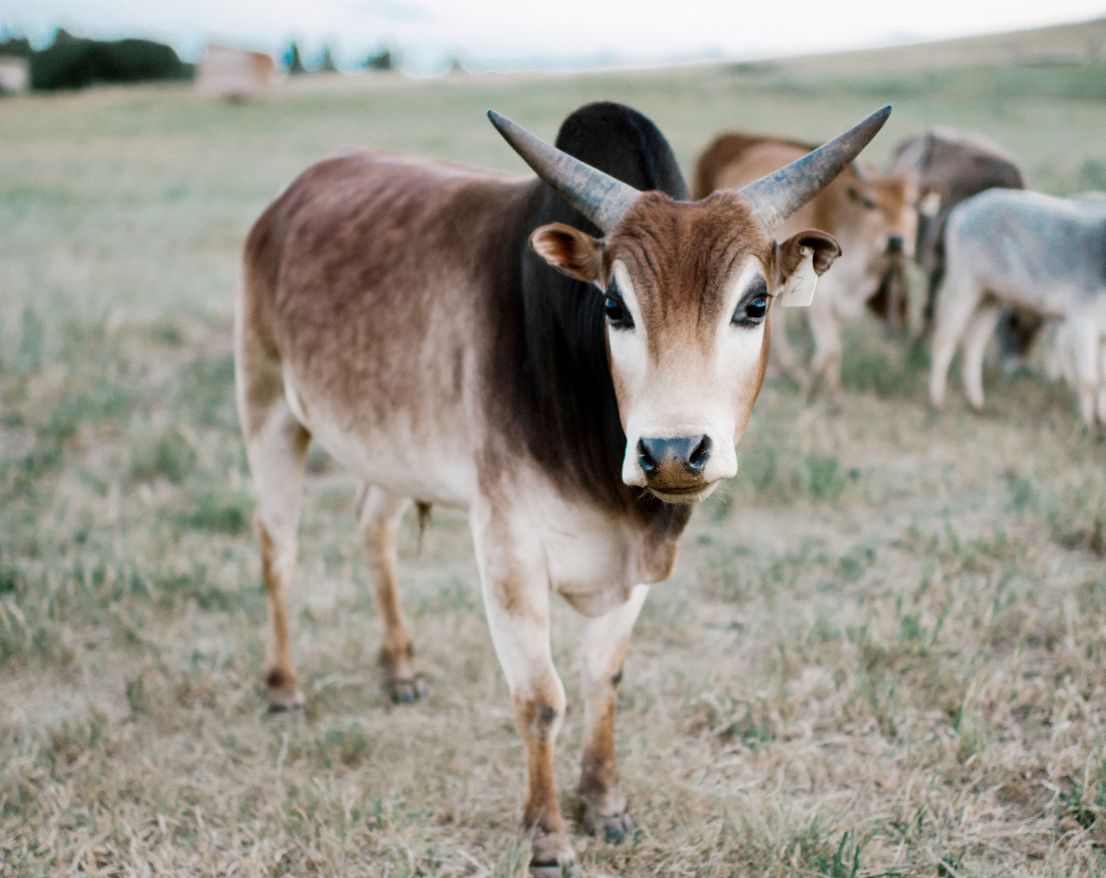 Zebu cattle—a rare breed used for pasture management at Cedar Ridge Ranch in Carbondale (see “Branching Out”)—can be identified by their long, pointy horns and signature humps. During farm tours, the males will often approach the fence looking to have their heads rubbed.
