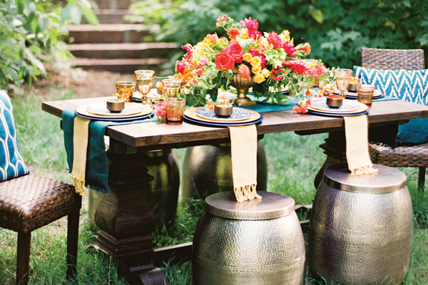 A Mediterranean tablescape, bursting with colorful blooms, practically insists upon late-afternoon lingering.