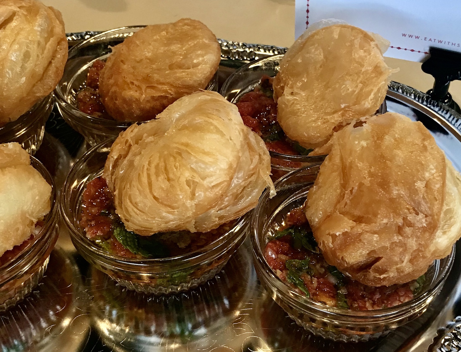 Next, move into the small plates section. Shaya is particularly fond of the crispy eggplant with goat cheese and caramelized tomato and the “kibbeh nayeh,” a standout dish of lamb tartare (kibbeh) that’s scooped up with pieces of buttery, flaky Yemenite flatbread (nayeh).