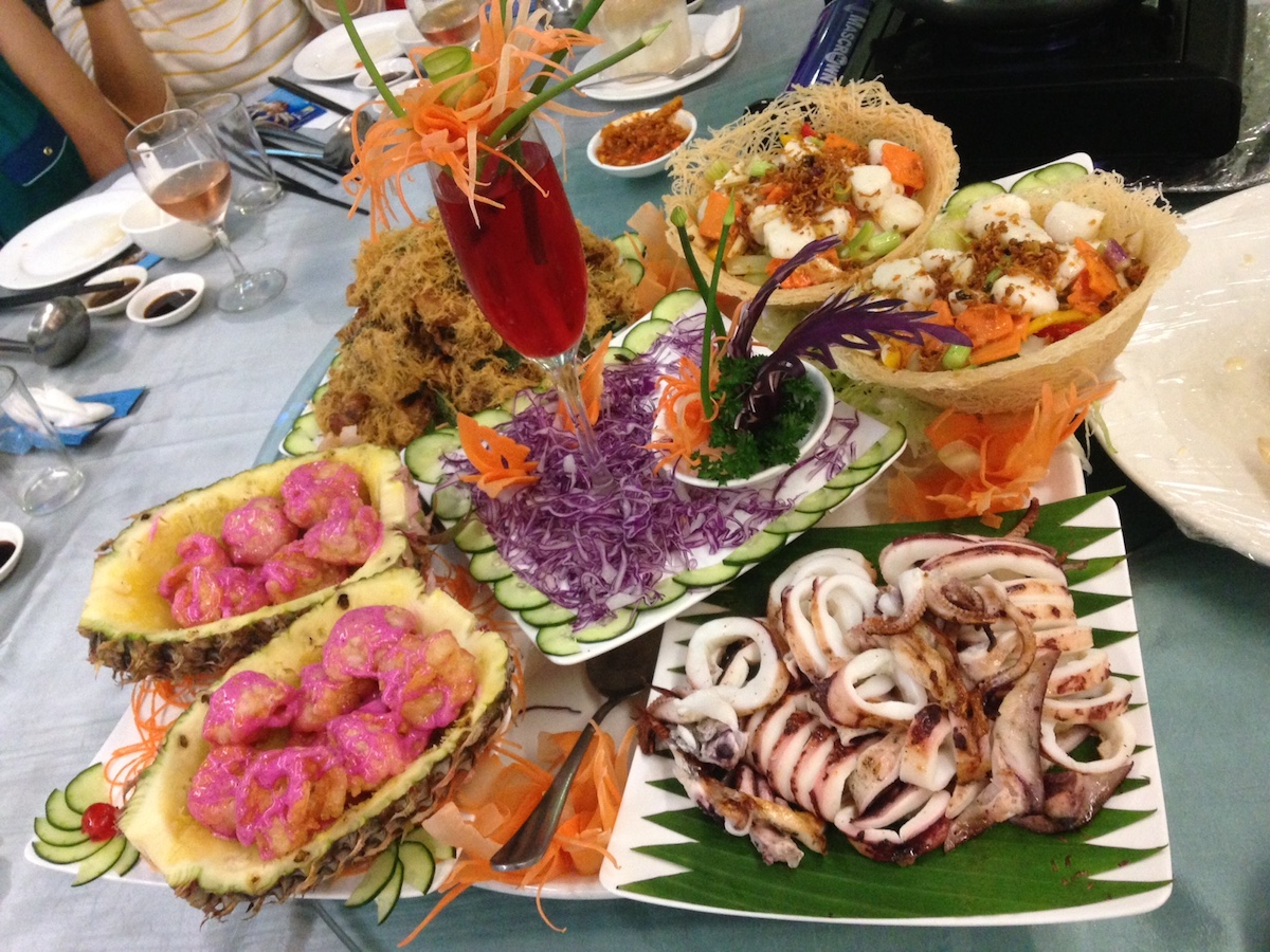 Kuala Lumpur: We enjoyed an incredible dinner at one of chef Griffiths’ favorite restaurants called Unique Seafood. The platter contained scallop ceviche, fried grouper with dragon fruit sauce, grilled calamari, and stir-fried seafood served in a noodle bowl. My favorite dish was the grouper with dragon fruit sauce