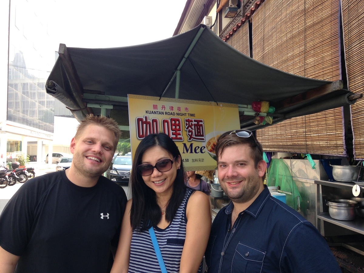 Penang: Bee, Ryan, and me on our first day in Penang outside of a hawker stall