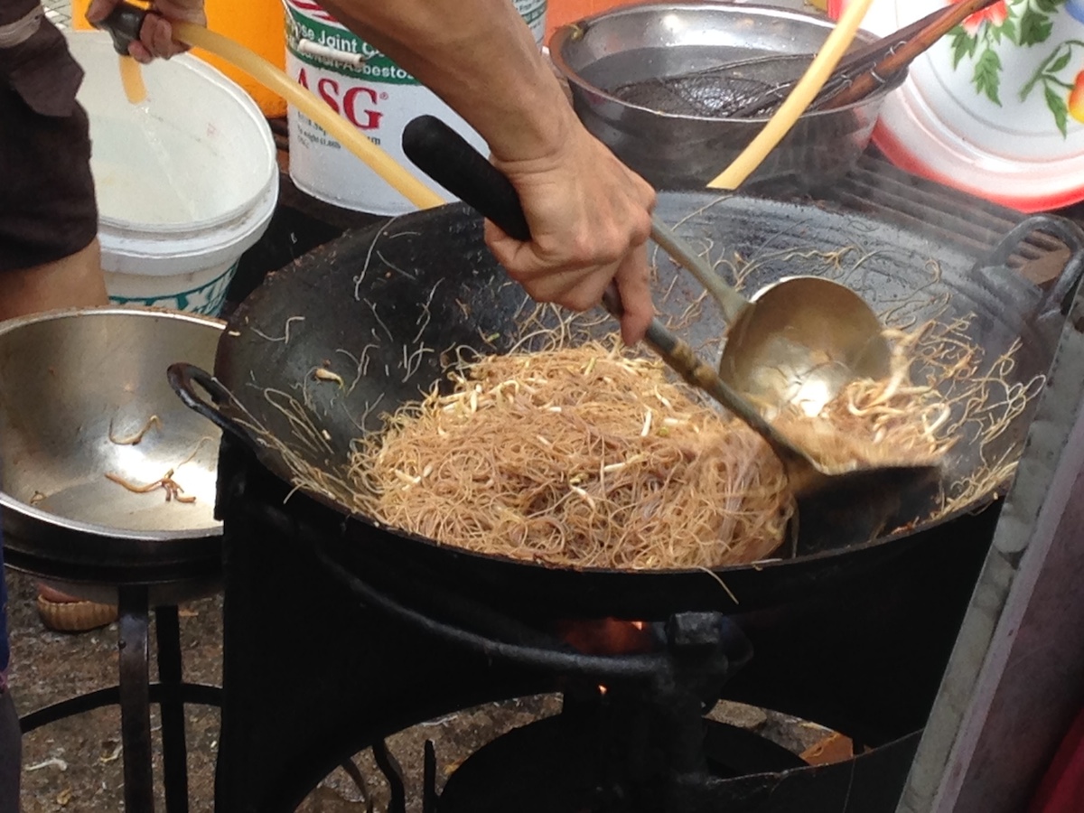Penang: There are food vendors all over the place. Instead of working out of a food truck like we do in the U.S., most hawkers simply set up shop in the street. We came across this guy stir-frying noodles over a gas flame in a way that’s very similar to how we make our noodles at ChoLon