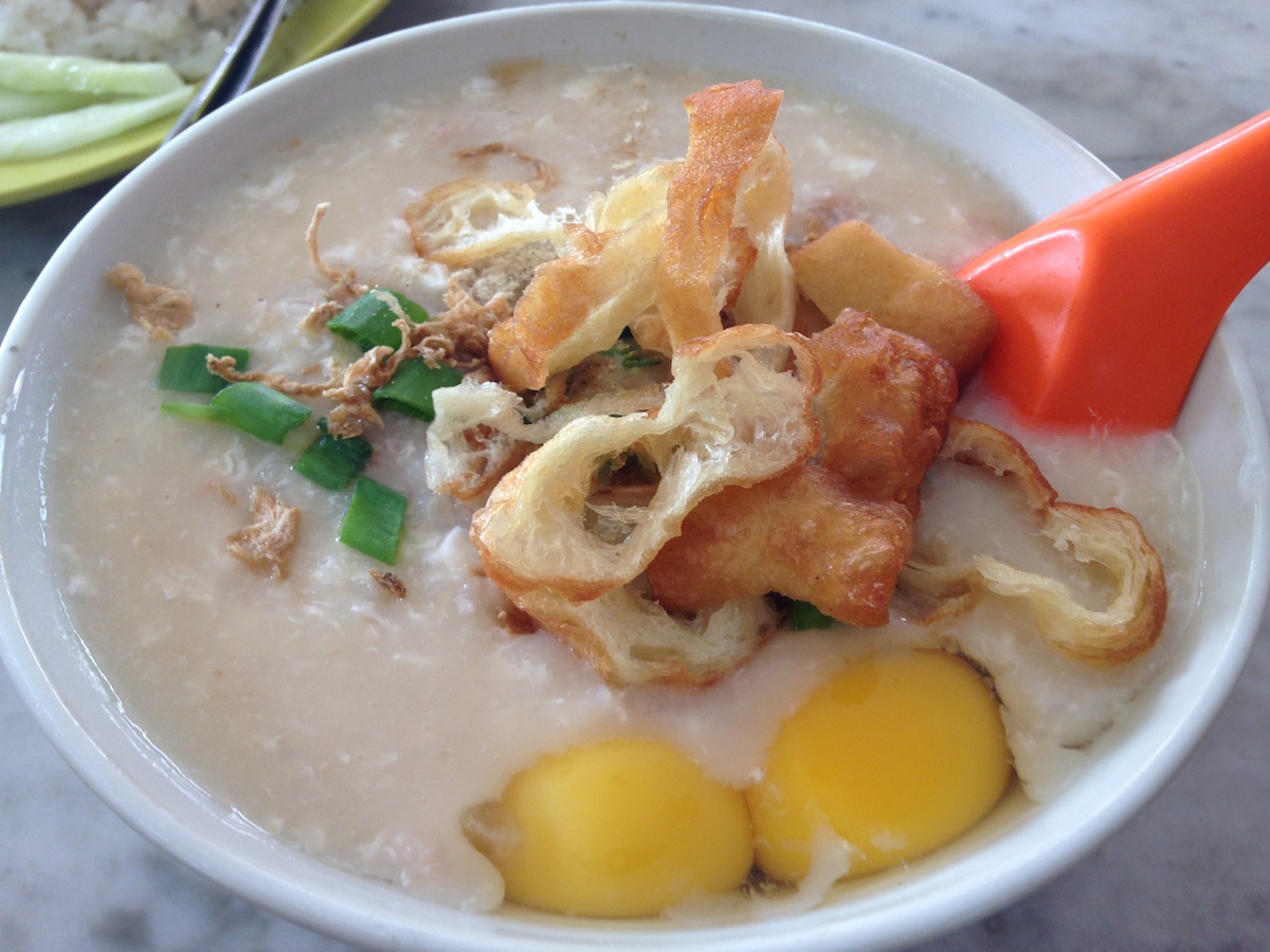 Singapore: This is a rice porridge with breadsticks. You slowly incorporate the raw eggs into the hot porridge to barely cook them. This is something we hope to replicate at Cho77 this winter