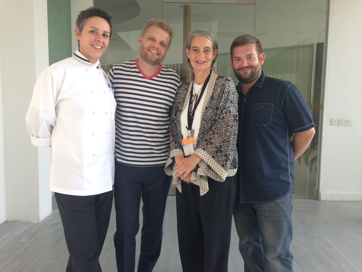 Singapore: A photo with chefs Eve Felder (right) and Gypsy Gifford (left). Chef Felder was my instructor at CIA in New York in 1999. She now runs the entire Singapore CIA school. Gypsy was one of my CIA classmates