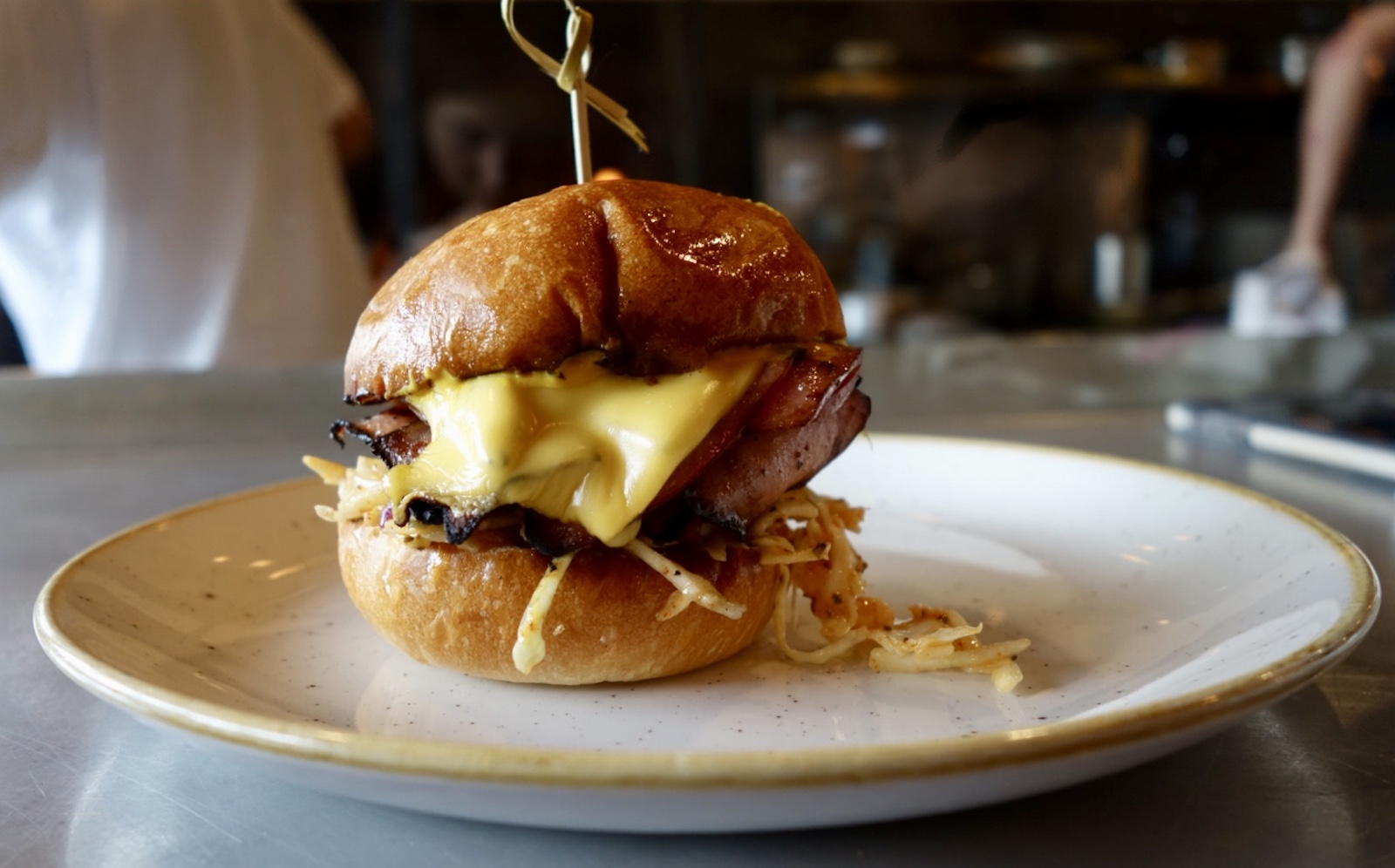 Take the SNG bologna sandwich: An entire loaf of Boar’s Head bologna is smoked out back, hand-cut, and then grilled over white oak and hickory before being piled on a yellow-mustard-brushed City Bakery brioche bun with slaw and melted American cheese. Get the full-size for dinner or enjoy a slider format during happy hour, but either way, get it.