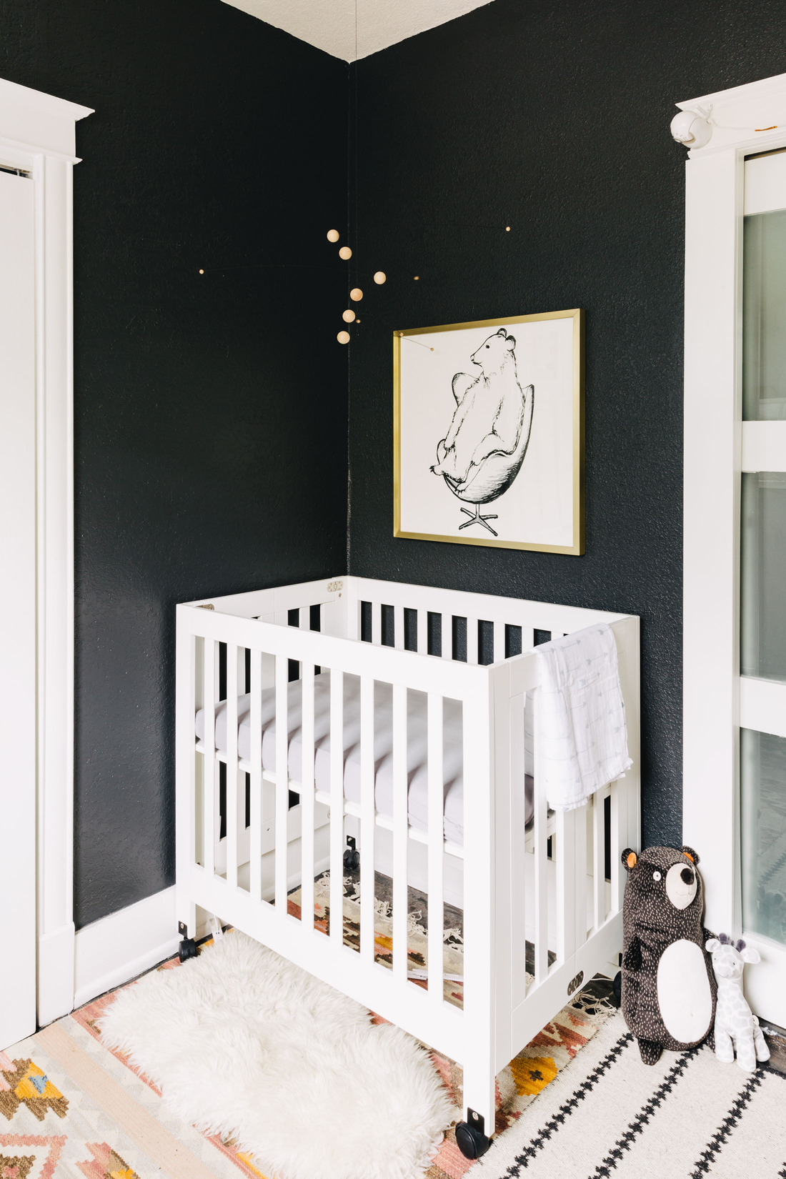 A streamlined mix of furnishings in black or white creates a consistent backdrop, and a collection of quirky accessories, offbeat art, and colorful rugs reflects the Mahers’ fun personalities. “There’s a really awesome mix of textures, patterns, and more subdued elements,” Amy says. “I think it strikes a good balance between being relaxing and provocative. It’s not boring.” Just like the couple’s approach to life, we might add.