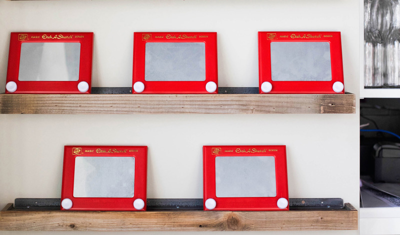 But the space’s crowning achievement is its rotating art wall. “We really wanted the thing that made waiting easier to be dynamic,” Kline says, “and that’s how we came up with the Etch A Sketch wall.” Guests waiting for a table—or their food—can turn the dials to pass the time and then place their finished creations back on ledges, custom-built by Denver-based Fin Art, to admire.