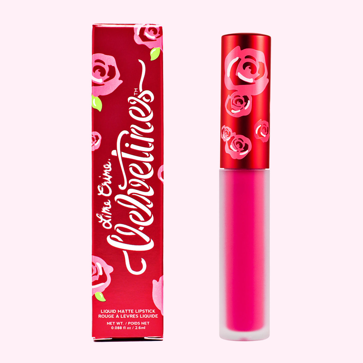 Use a Makeup Forever 300 Lip Brush ($21, makeupforever.com) to mix and apply Lime Crime Velvetine Matte Lipstick in Pink Velvet and Faded ($20, limecrime.com) to the center of the lips and blend it out to the corners. Then take MAC Cosmetics Lip Pencil in Magenta ($17.50, nordstrom.com) and draw around the edges of the lip to clean up the lines.