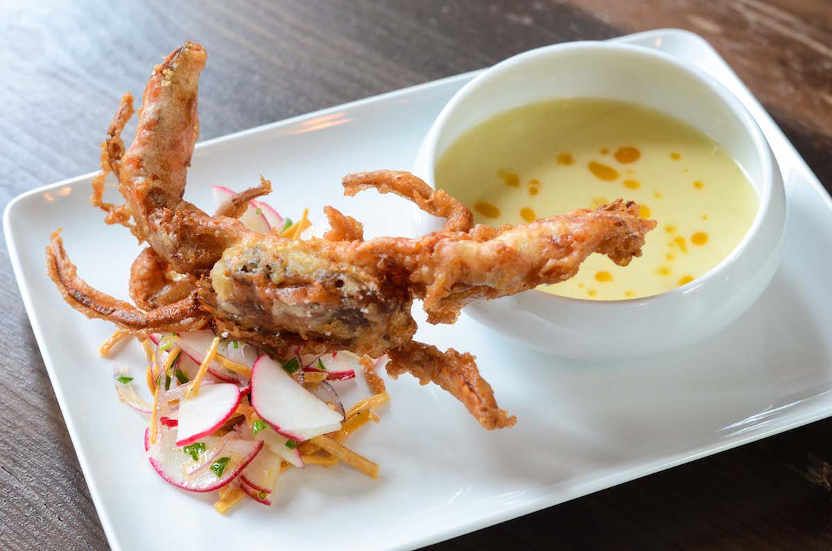 Across town: Hungry for more soft-shell crab? Try chef Justin Brunson‘s take at Old Major. The just-fried crab arrives claws in the air and ringed with a wedge of Denver Bacon Co.’s fresh bacon, avocado mousse, charred cherry tomatoes, and dollops of tarragon aïoli.