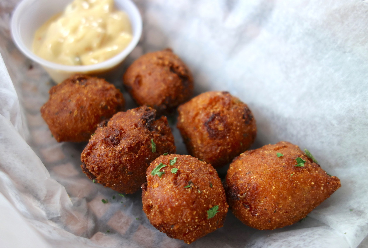 You can order that étouffée solo, but you can also get it on the Cajun cheese fries—spiced waffle-cut spuds smothered in mozzarella as well as the velvety stew, chock-full of sweet Gulf crawfish. Other deep-fried delights include textbook hushpuppies—hot and crunchy outside, soft and light inside, with a side of aïoli—and chicken gizzards, an organ meat you don’t want to chew over too much but you will want to chew on, intensely rich as they are and accompanied by thick, creamy house-made tartar sauce.