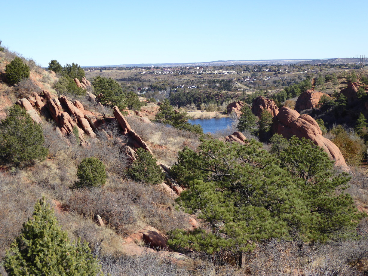 Getting there: From Denver follow I-25 south to Colorado Springs. Take Exit 145 and turn right (west) on Fillmore Street, which turns into Fontmore Road, then West Fontanero Street. At 2.4 miles from the exit, turn left onto North 31st Street. After 0.7 miles, turn right onto US 24 and follow this west for 0.6 miles, then turn left onto Ridge Road. After 0.1 mile, turn left into the large parking lot.