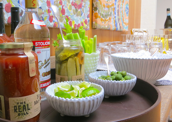 Go big and create an extensive Bloody Mary bar (guests will naturally mingle while building their own cocktails). For a high-quality pre-made mix, we use the Real Dill’s fresh cucumber-infused version. Co-owner Justin Park suggests subbing in silver tequila for the vodka and—of course—garnishing with a Real Dill pickle spear. (We reach for the Habanero-Horseradish dills). Don’t forget crisp celery, olives, and a lime wedge for finishing the drinks.