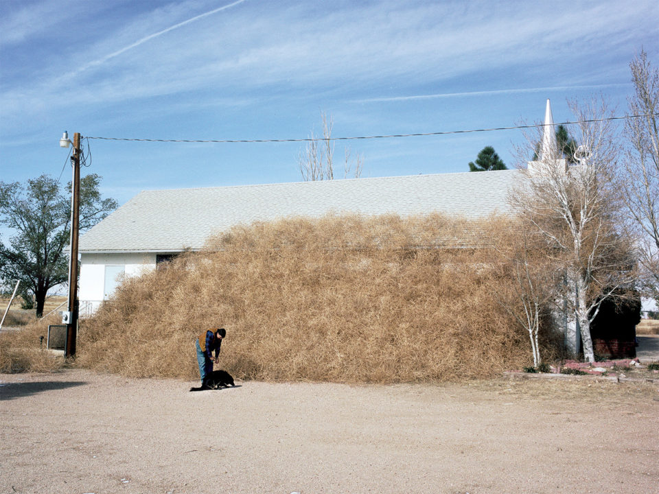 Russian thistle’s tumbleweeds are beach-ball-size, on average, but can grow to more than four feet in diameter. Today, they proliferate on Colorado’s plains, awaiting the right conditions—usually a frost followed by a wind storm—to break off from their stems and overwhelm roads, parked cars, and even entire buildings, as they did Hanover Community Church, southeast of Colorado Springs.