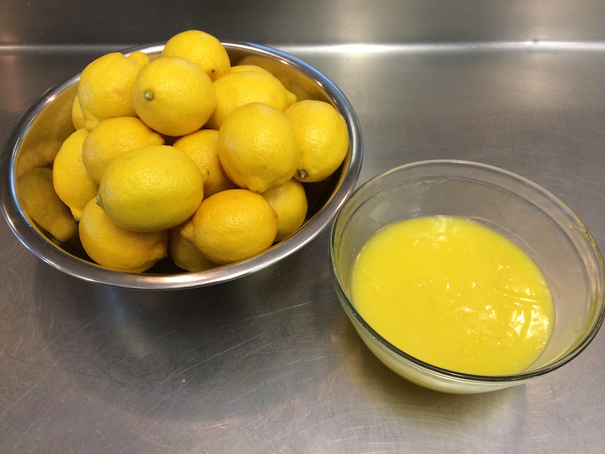 Step 1. Place a saucepan over medium-low heat. Add the zest of 1 lemon, 3 ¼ ounces of sugar, and 4 ounces of fresh lemon juice. Whisk, and slowly bring the mixture to a light boil. Meanwhile, combine 3 eggs and 3 ¼ ounces of sugar in a separate bowl.