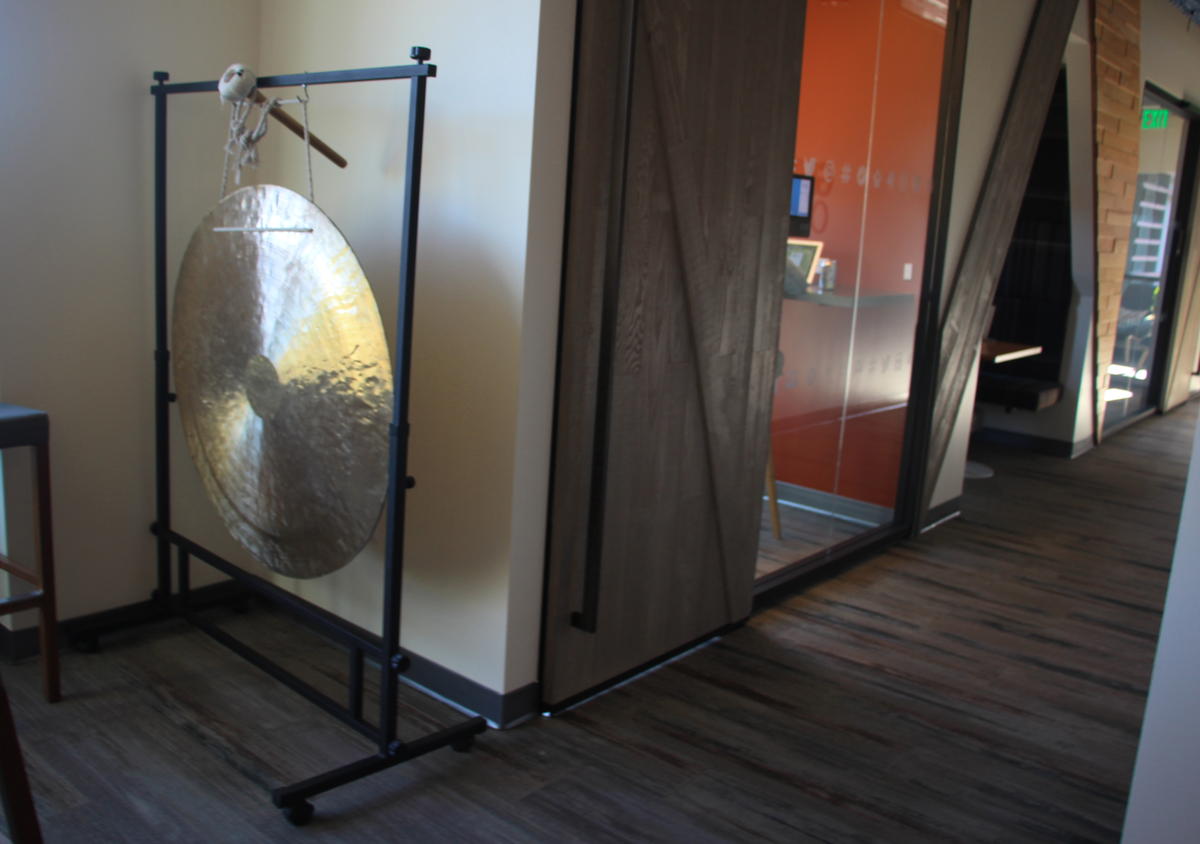 Best of all, patios stretch out on the south and western sides of the building on both floors, where employees can work in the shadow of the pine-blanketed foothills, or just chat over a crisp kombucha.