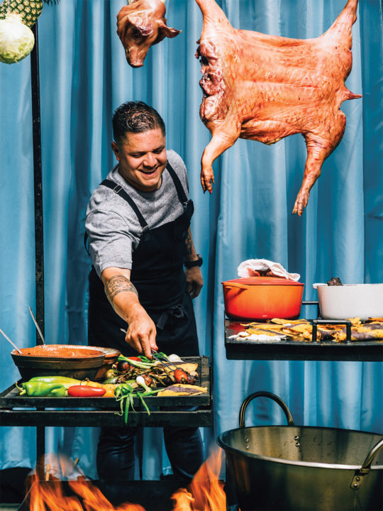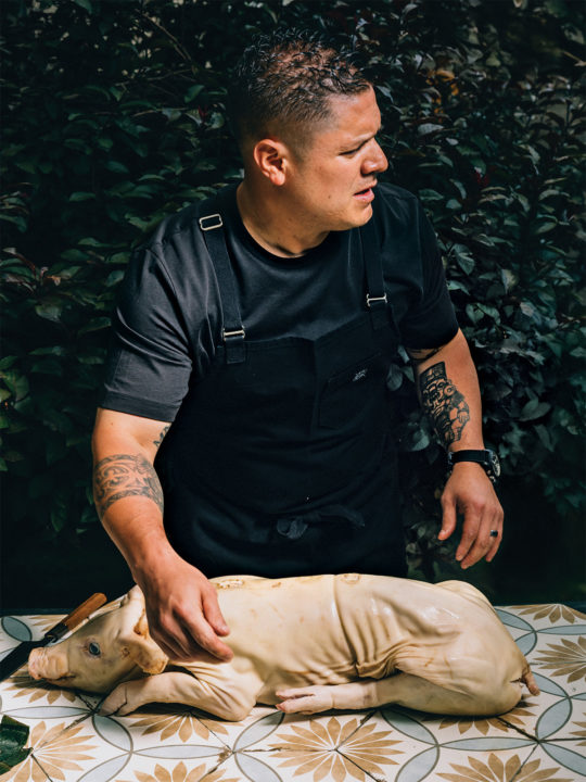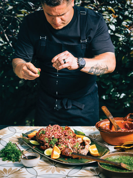 Every summer for the past three years, restaurateurs Johnny and Kasie Curiel have hosted a dinner party with one unusual guest: a whole hog. A day or two before the Curiels’ friends and family sip mezcal, margaritas, and ice-cold Modelos on their LoHi patio, Johnny can be found at his kitchen counter breaking down a 90- to 120-pound pig (or two to three smaller ones): shoulders and shanks, ribs and belly, even the head and feet. The cuts are bound for a variety of traditional Mexican dishes he has perfected after working in his parents’ restaurant in Guadalajara, traveling all over Mexico for food research, and serving beautiful plates at the couple’s restaurants: Michelin-starred Alma Fonda Fina in LoHi, Mezcaleria Alma next door, Cozobi Fonda Fina in Boulder, and Alteño in Cherry Creek.