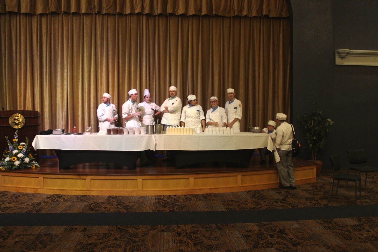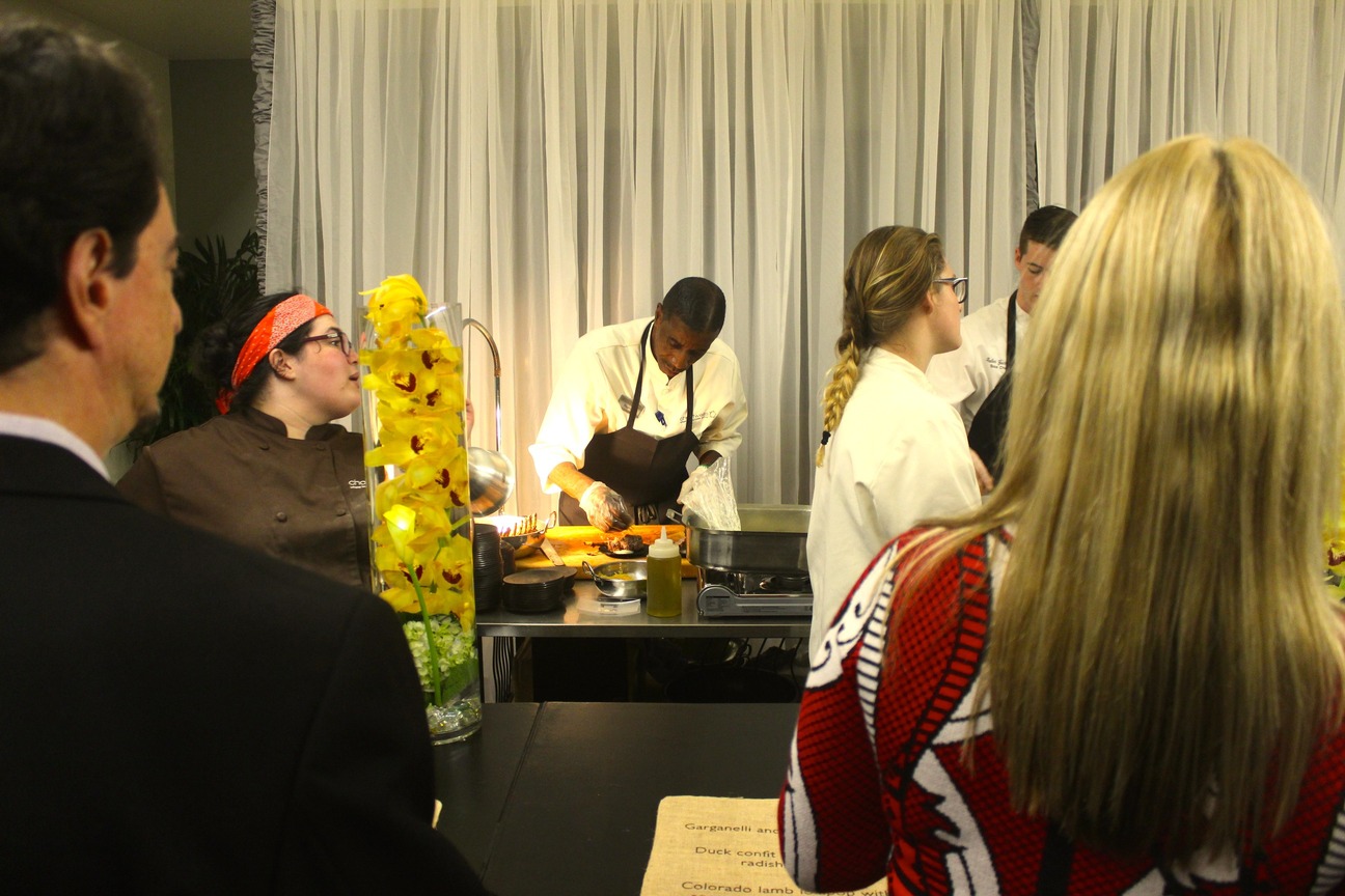 Johnson & Wales students, faculty, sponsors and community members celebrated the reopening of the campus’ dormant centerpiece on Tuesday evening. Champagne and artfully prepared food were both as abundant as you’d expect from an institution where more than half the students pursue culinary studies. The university’s 2000 acquisition of land for its Denver campus included the shuttered building, which was built in 1886 for the Colorado Women’s College. Seventeen million dollars later, the new Centennial Hall will serve as a student union, event center, and classroom building, but also as a reminder of the campus’ history.
