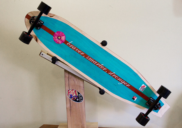 Those designers are the folks at KOTA Longboards. The Denver-based longboard company–part of a $3 billion domestic longboard market—launched in 2012. The women’s boards feature the same technology and sizing as the men’s but have feminine styling (a flower design and bright border colors) and the tagline “braver, smarter, stronger” on the bottom. Maloney hasn’t been able to keep the boards in stock.