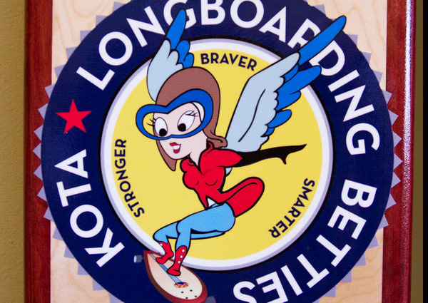 The logo for the Longboarding Betties (KOTA’s women’s longboarding club) is based on the Women Airforce Service Pilots who served during World War II