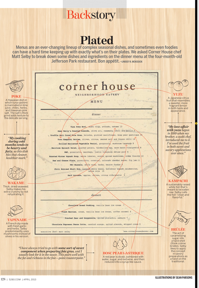 Menus are an ever-changing lineup of complex seasonal dishes, and sometimes even foodies can have a hard time keeping up with exactly what’s on their plates. We asked Corner House chef Matt Selby to break down some dishes and ingredients on the dinner menu at the four-month-old Jefferson Park restaurant. Bon appétit.