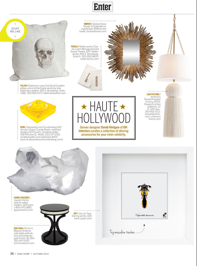 Denver designer David Hintgen of DH Interiors curates a collection of alluring accessories for your inner celebrity.
