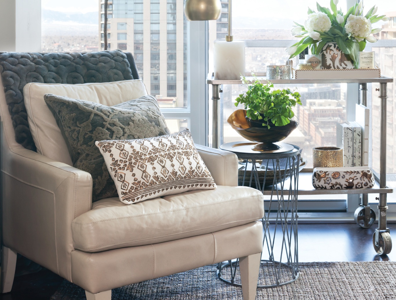 In a two-bedroom condo on the 36th floor of the Spire, designer Teresa Davis of Post 31 Interiors created her dream downtown retreat. We chatted with her about getting an effortlessly layered look—in just 1,100 square feet.