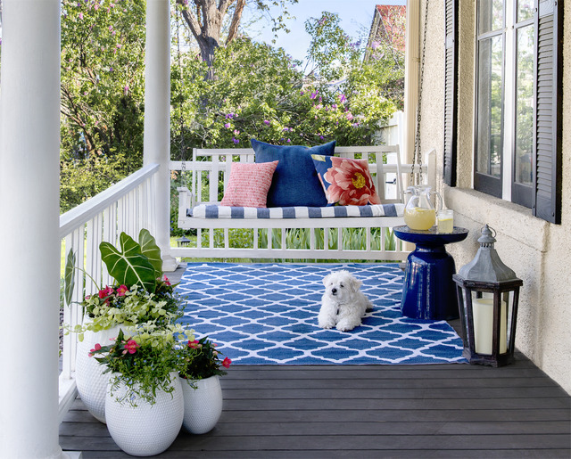 A farmhouse-inspired Greenwood Village porch invites neighbors to sit and stay a while.