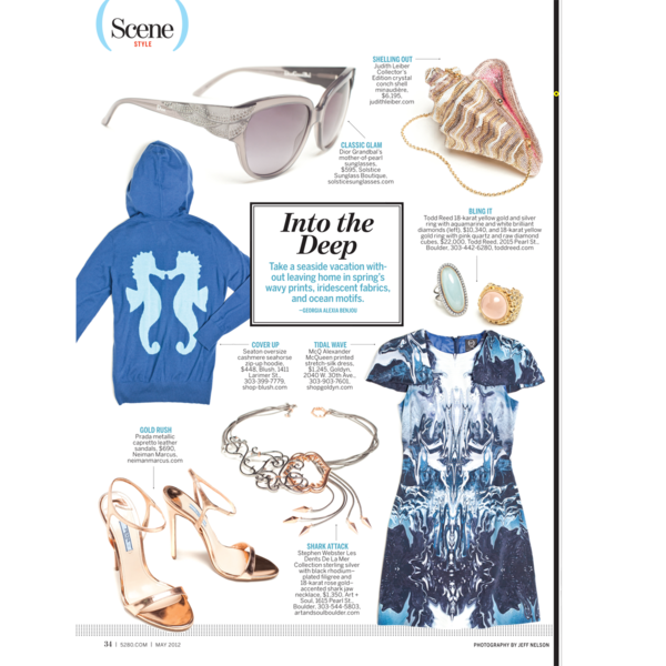 Take a seaside vacation without leaving home in spring’s wavy prints, iridescent fabrics, and ocean motifs.