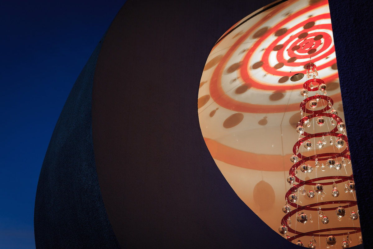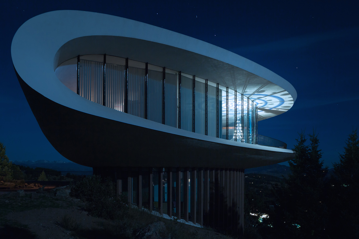 The next time you’re driving up I-70 after dark, make sure to glance in the direction of the Sculptured House (aka the Sleeper House) on Genesee Mountain; you might see a rather eerie glow being cast through the home’s iconic curved windows. The story behind the source of the light—one of Stapleton resident Matt Bliss’ luminescent Modern Christmas Trees—starts in the mid-1960s, right around the time that the Sculptured House was being built by celebrated architect Charles Deaton.