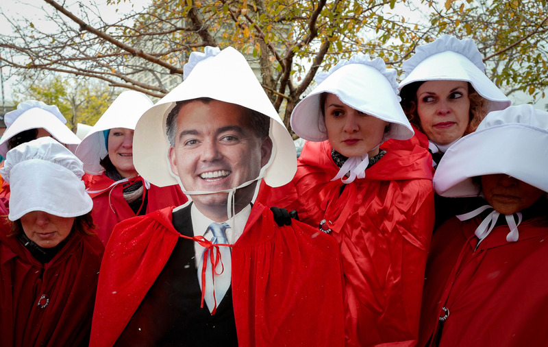 Pence’s first trip to the Centennial State as Vice president was to visit Colorado Springs in June, where he spoke at the 40th anniversary of Focus on the Family—one of the leaders of the Christian right political movement that emerged under Reagan, and inspired Atwood’s tale. Throughout his political career, Pence spoke out against working mothers, women in the military, and the LGBTQ community. He also led the charge to defund Planned Parenthood, voted to limit federal funding of abortions, and removed protections for the nation’s Title X family planning program.