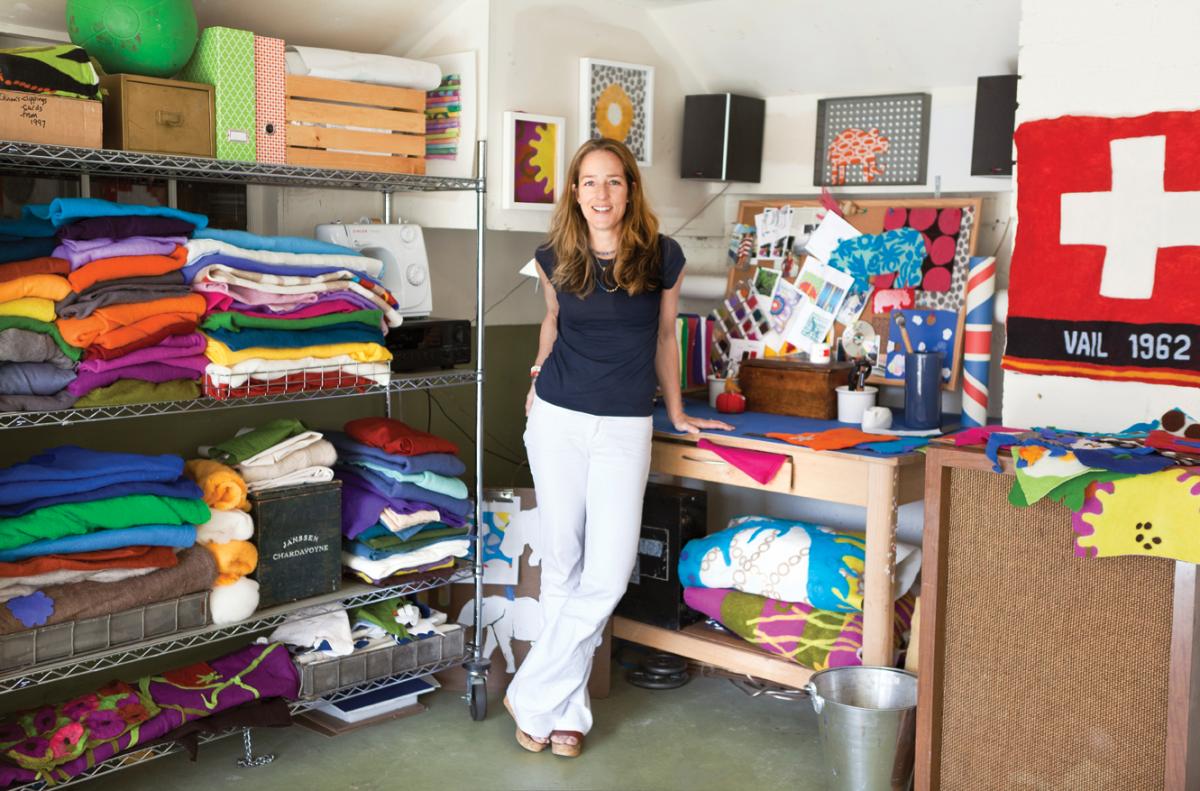 The former graphic designer discovered the craft while watching her kids work with felt in preschool, and she started by making pillows. An art-consultant friend who admired Quinn’s work soon commissioned four large pieces. “When the art was complete, we looked at the group and knew I had something people would respond to,” Quinn says. She was right: Today, Quinn’s works are sold by high-style retailers including One Kings Lane and Serena & Lily-. She also does large-scale commissioned pieces for collectors (such as “Astral Botanical,” pictured above).
