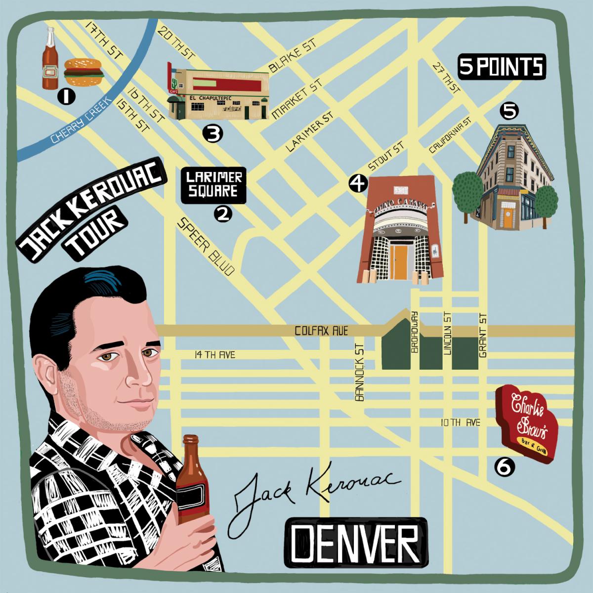 Jack Kerouac, father of the beat Generation—and now, thanks to the 2012 flick starring Sam Riley and Kristen Stewart, likely the great-grandfather to a bunch of millennials—would have celebrated his 92nd birthday this month. Although Kerouac was originally from Massachusetts, he spent time in Denver in the late 1940s, which he chronicled in his classic novel On The Road. A precise account of Kerouac’s Denver tenure is about as easy to find as a concise sentence in his prose, but legend abounds. So in honor of the Memory Babe’s 92nd year, we’ve put together this guide to the lore: a map of spots rumored to have hosted the voice that changed a generation.