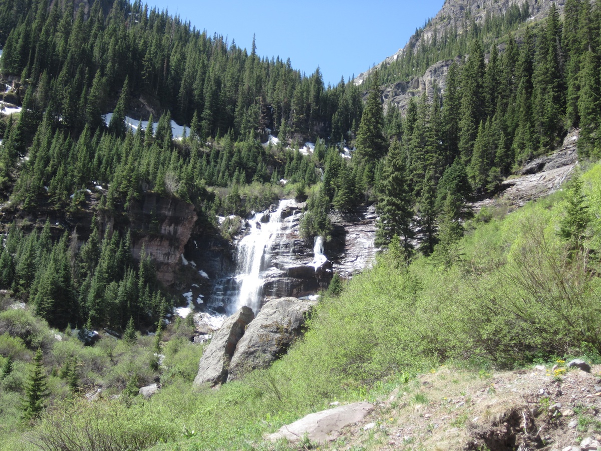 I was bummed that we’d have to settle for a more tourist-y jaunt like Bear Creek Trail, which starts on the south end of Pine Street, because much of the Telluride area is still too muddy or snow-packed for casual hiking. I was wrong. Bear Creek is convenient, but it is anything but ho-hum. The 2.5 mile trek (one-way) to a stunning waterfall (what waterfall isn’t stunning?) is a favorite for families, runners, and out-of-town guests. Join the masses. It is worth it.