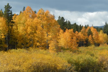 Golden aspens line a hiking trail in Rocky Mountain National Park
