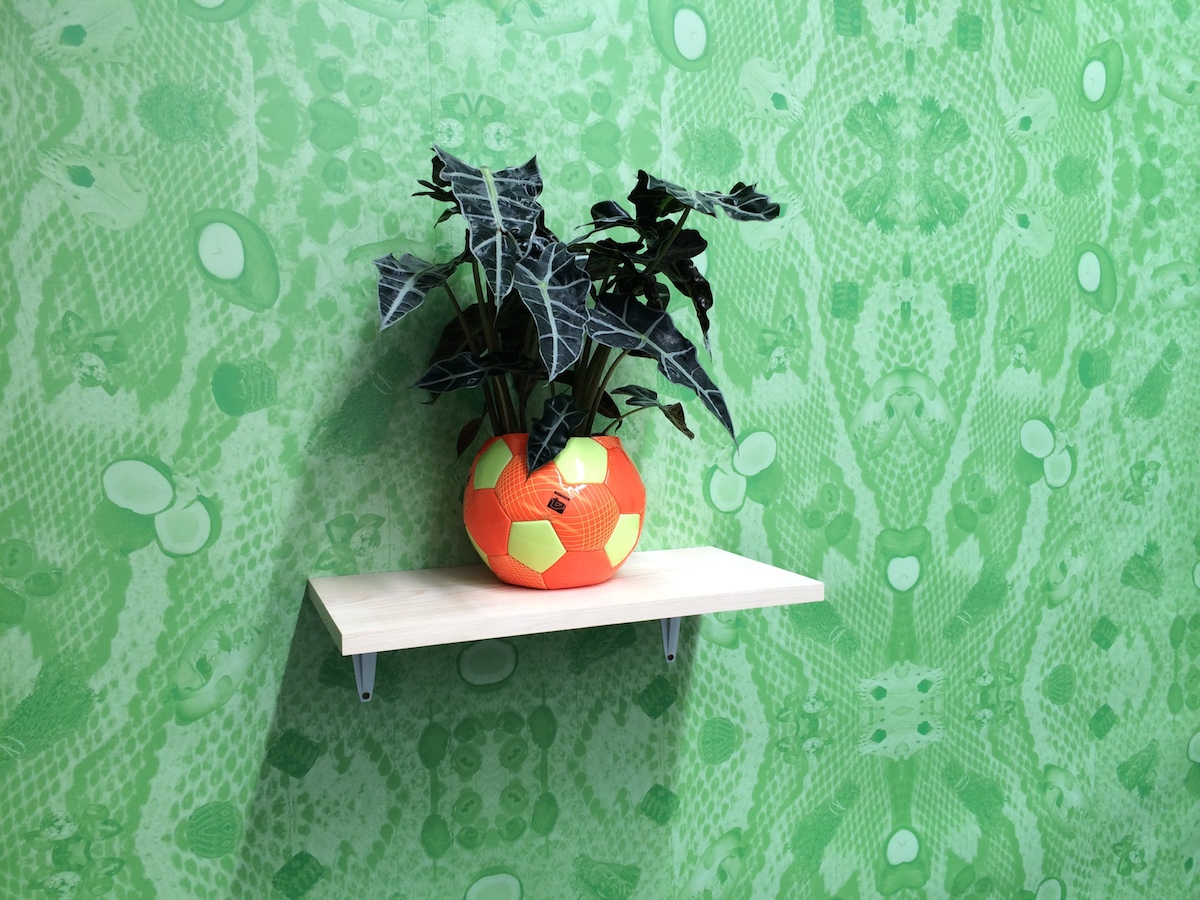 Puerto Rican artist Radamés “Juni” Figueroa adds some much-needed brightness to the second floor with his “tropical readymades”—repurposed objects (in this case, soccer balls and basketballs) and plants that combine in a playful reminder of his lush homeland