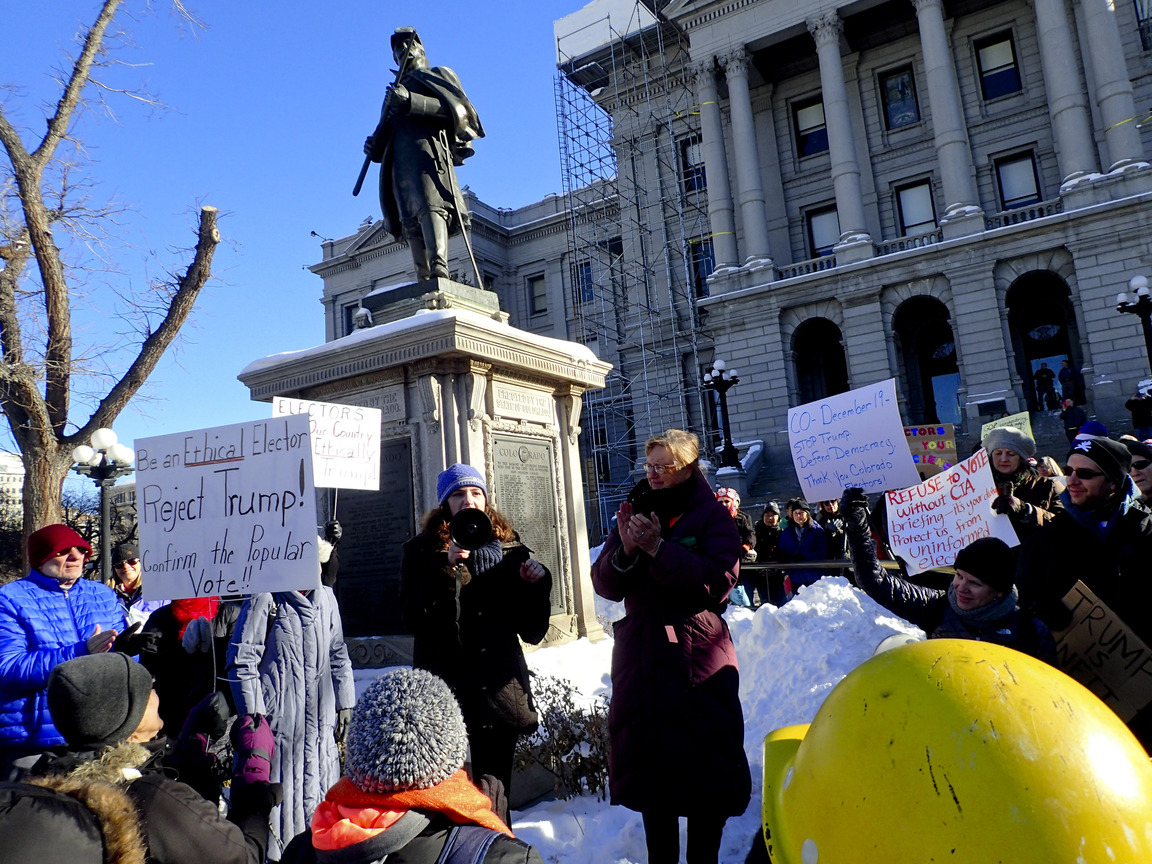 Earlier that morning, Baca and about 250 protesters gathered on the steps of the State Capitol in Denver to peacefully demonstrate against a Donald Trump presidency and the Electoral College voting process. The hope was that 37 Republican electors would instead vote for an alternative nominee, denying Trump the 270 electoral votes he needed to win the presidency. If this happened, the decision would have gone to the GOP-controlled House of Representatives, which is why Baca and other faithless electors were pushing for a conservative candidate.