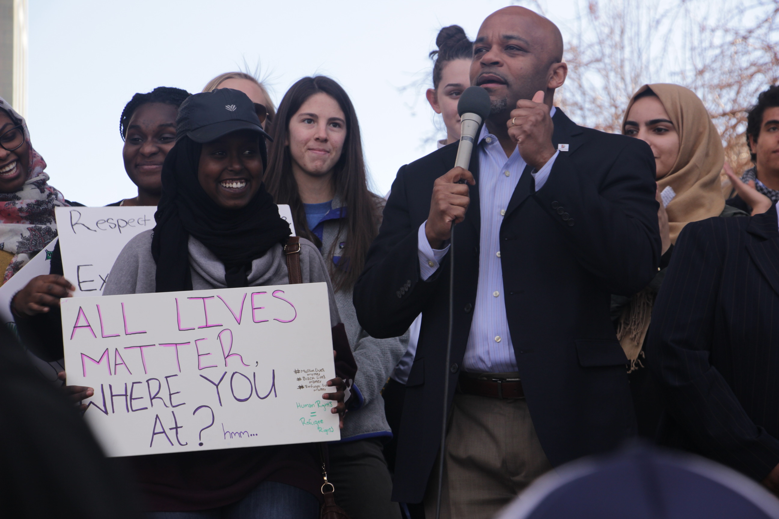 “We will not let the racism, Islamophobia, xenophobia, the nastiness characterized in our president’s executive orders tear this city or this nation apart,” Mayor Hancock said at the rally.