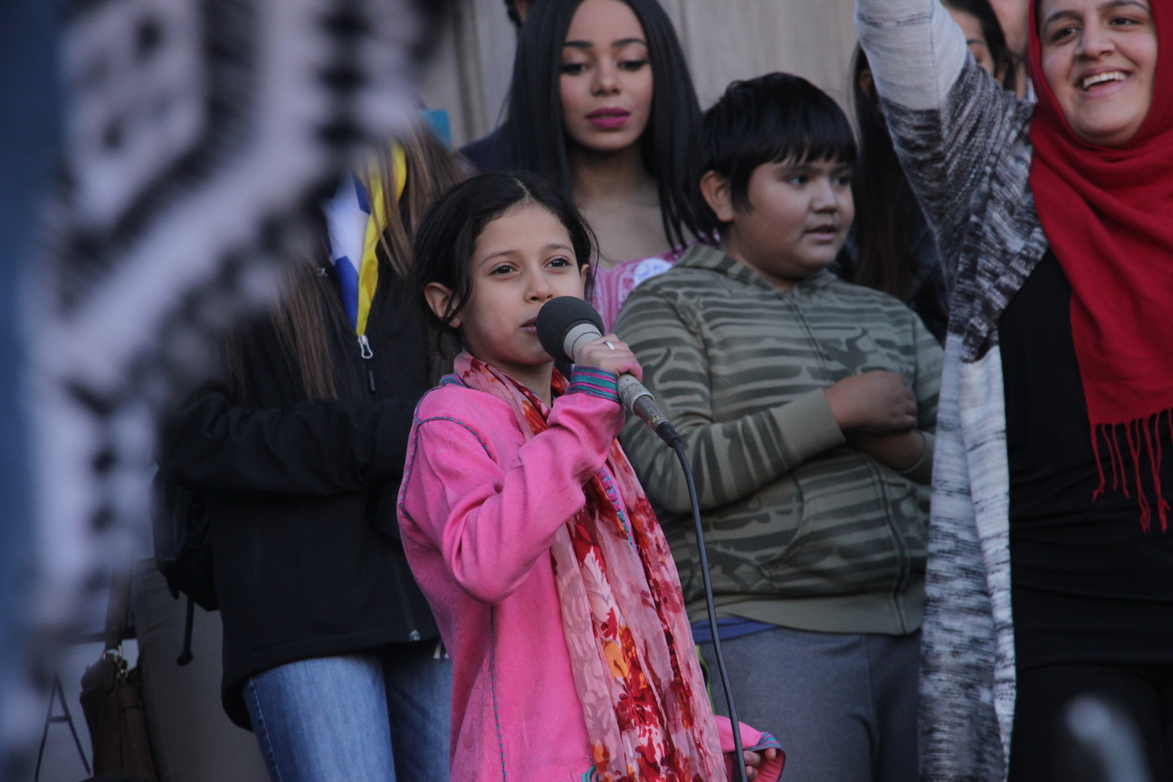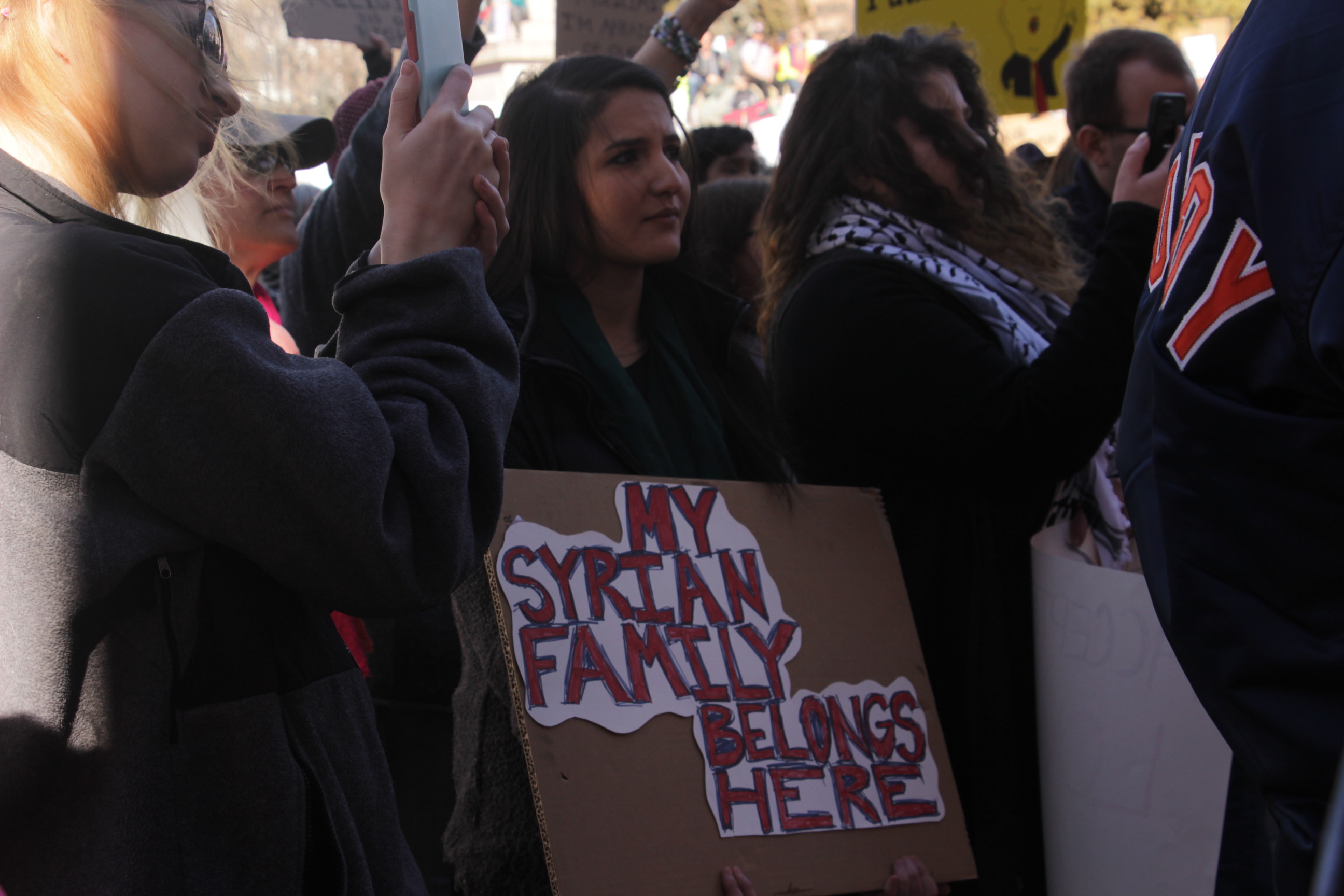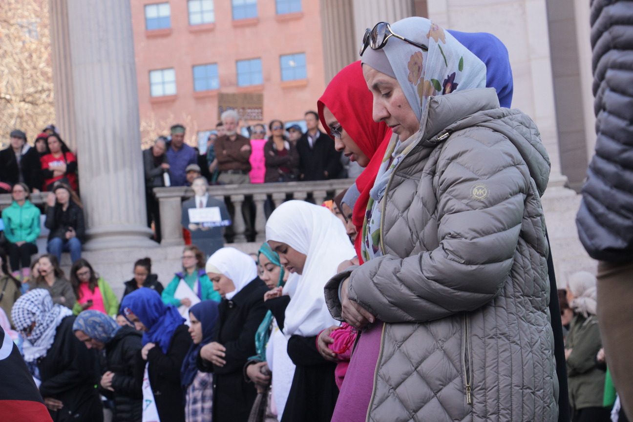 An estimated several thousand people gathered Saturday afternoon to participate in the Protect Our Muslim Neighbors Rally, organized by Queen Phoenix, a leader of the advocacy group Community for Unity, and other local activists, to show support for Colorado’s Muslim population. The demonstration took place one week after President Donald Trump signed an executive order that halts the entry of nationals from seven Muslim-majority countries for 90 days, and prohibits refugees from entering the United States for 120 days. That ban was recently lifted, at least temporarily, by a federal judge. Trump had campaigned on the unsubstantiated claim that Syrian refugees pose a threat to U.S. security. (Read about his likening of Syrian refugees to snakes at a Denver rally last summer).