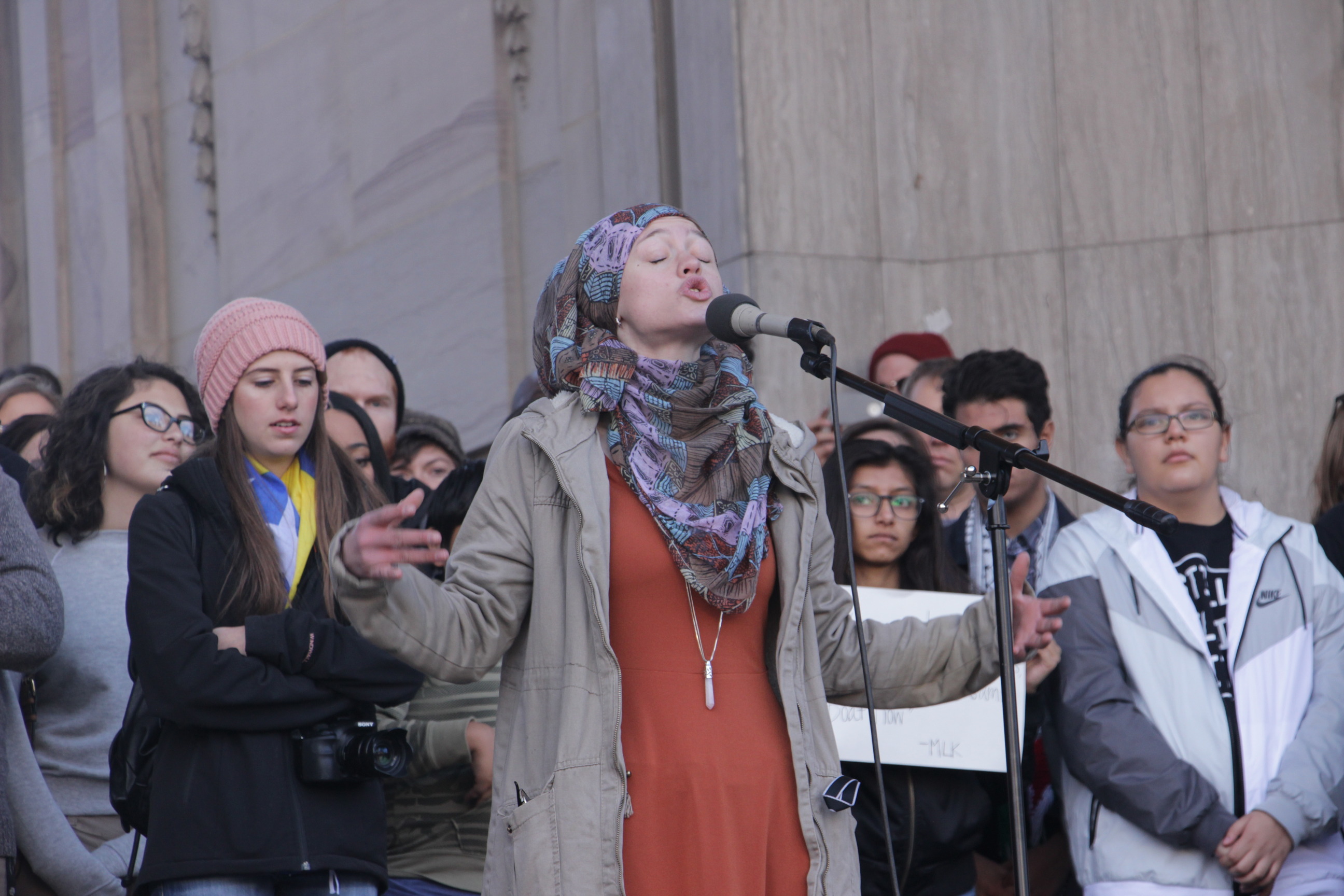 The event lasted nearly four hours and was peppered with break-out chants, ample usage of poetry and music, and many personal stories pertaining to immigration and religious freedom.